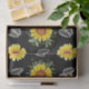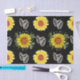 Papel floral de tejidos, papel de tejidos negro y amarillo con patrón de girasol
