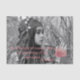 Tejido con la imagen de un joven chica gitano en blanco y negro sosteniendo una flor rosa con una cita de Aristóteles.