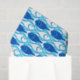 Diseño moderno de mediados de siglo de peces estilizados, alternando espacios positivos y negativos - medios mixtos gráficos en azul cobalto y blanco, acentuados con azul celeste y agua