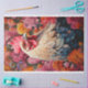 Hermoso y caprichoso papel en el que aparece un pollo colorido entre flores vibrantes. Este diseño inspirado en la pintura le da un toque artístico a sus creaciones. Que florezca la creatividad con esta deliciosa adición.