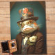 Seda Retrato de pescado en traje y Gorra 4 Papel descon