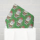 Un divertido papel de tejido verde para llenar tus bolsas de regalo de Navidad con el patrón de una vaca usando un sombrero rojo de Santa y colgando las luces de sus Navidades. Funciona perfectamente para niños y adultos por igual. ©Ilustraciones ArianeC