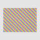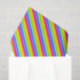 Papel de envoltura de regalo de tejidos con tiras de arcoiris coloridas ideal para envolver regalos especiales de cumpleaños u otras ocasiones. El envolvimiento presenta un audaz patrón de rayas repetidas en color rosa, púrpura, naranja, amarillo, verde y azul sobre un papel tisular. Diseño de Sarah Trett.