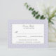 Diseñada para coordinar con nuestra colección de bodas Pastel Seigaiha, esta elegante tarjeta de respuesta con tema náutico presenta un patrón simple de círculos concéntricos en capas que crean arcos, simbólicos de olas o agua y que representan oleadas de buena suerte enmarcan la fecha de respuesta deseada y la elección de comida o selecciones de entrada. Reverso de la tarjeta a un gris oscuro coordinado que se puede cambiar a cualquier color para que coincida con el esquema de color de su boda de playa. Perfecta para boda con tema de océano o playa o celebración en un lugar tropical o costero.