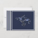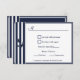 El azul marino náutico traga invitaciones RSVP 2 opciones de menú - el diseño frontal incluye una cinta de anclaje con un contorno que recorre los bordes de la tarjeta. Los diseños y textos son azul marino sobre un fondo blanco. El diseño posterior continúa con la cinta alrededor de la tarjeta y los colores de contorno y fondo se han cambiado, donde el contorno es blanco y el fondo es azul marino. En el centro hay dos golondrinas en vuelo, trabajando juntas para llevar un ancla sobre una cuerda. De forma predeterminada, el papel se establece en el stock de invitación básico, pero se puede cambiar haciendo clic en 'elija su estilo' y, a continuación, utilizando el cuadro desplegable Papel, seleccione una de las opciones. Cada invitación incluye un sobre blanco. Para cambiar el tipo de letra, el tamaño del tipo de letra o el color de la fuente, haga clic en el botón personalizar situado debajo de la invitación a la confirmación Náutica. Tenga en cuenta que puede tener que personalizar si cierta redacción es demasiado larga y por lo tanto se ajusta mejor al diseño. Si está satisfecho con la configuración del tipo de letra, puede utilizar la característica de personalización para cambiar la información de demostración a sus datos personales. Pulsando las imágenes pequeñas de la parte delantera/trasera de la tarjeta con el cambio a ese lado para que pueda ser alterada. Cuando haya terminado, compruebe que la información que ha aplicado es correcta y que no hay errores de ortografía en ambos lados de la tarjeta. Otros productos que van con este.