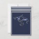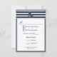 El azul marino náutico traga invitaciones RSVP 2 opciones de menú - el diseño frontal incluye una cinta de anclaje con un contorno que recorre los bordes de la tarjeta. Los diseños y textos son azul marino sobre un fondo blanco. El diseño posterior continúa con la cinta alrededor de la tarjeta y los colores de contorno y fondo se han cambiado, donde el contorno es blanco y el fondo es azul marino. En el centro hay dos golondrinas en vuelo, trabajando juntas para llevar un ancla sobre una cuerda. De forma predeterminada, el papel se establece en el stock de invitación básico, pero se puede cambiar haciendo clic en 'elija su estilo' y, a continuación, utilizando el cuadro desplegable Papel, seleccione una de las opciones. Cada invitación incluye un sobre blanco. Para cambiar el tipo de letra, el tamaño del tipo de letra o el color de la fuente, haga clic en el botón personalizar situado debajo de la invitación a la confirmación Náutica. Tenga en cuenta que puede tener que personalizar si cierta redacción es demasiado larga y por lo tanto se ajusta mejor al diseño. Si está satisfecho con la configuración del tipo de letra, puede utilizar la característica de personalización para cambiar la información de demostración a sus datos personales. Pulsando las imágenes pequeñas de la parte delantera/trasera de la tarjeta con el cambio a ese lado para que pueda ser alterada. Cuando haya terminado, compruebe que la información que ha aplicado es correcta y que no hay errores de ortografía en ambos lados de la tarjeta. Otros productos que van con este.