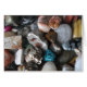 Fotografía de una selección de hermosas rocas pulidas que incluyen hematita, ojo de tigre, turquesa, ágates.