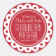Los corazones de la comida roja y blanca son la etiqueta perfecta para etiquetar conservas de frutas rojas, jalea, trufas de mermelada u otra comida hecha con fresas, frambuesas, lombardos, bayas de boicot o arándanos, perfecta para regalos de Navidades, fiestas de intercambio de galletas o para vender sus productos caseros en ferias de artesanías y mercados de agricultores. Use estos pegatinas para sellar sus regalos de Navidades o para una mirada profesional a sus productos de venta. También es perfecto para regalos y favores cocinados en casa de los niños a la familia y amigos. En la actualidad lee Valentine's Made with love Strawberry Preserve más la fecha en la que se produjo el artículo. Personalizable completo con su propio nombre, detalles del producto y fecha. Diseñado por Sarah Trett.