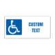 Signo de accesibilidad. Símbolo de silla de ruedas. Persona blanca estilizada en silla de ruedas. Fondo azul. Texto personalizado.