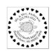 Este sello redondo presenta un círculo decorativo de corazones que enmarcan todo el diseño. El nombre se muestra en una curva suave en la parte superior, seguida por el número de teléfono directamente debajo. En el centro, un gráfico de una tortuga aporta un toque encantador y personal. La dirección está elegantemente curvada alrededor de la parte inferior en dos líneas separadas, completando el diseño circular.