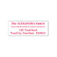 Este sencillo diseño de sellos de goma incluye un nombre de familia personalizado más una dirección postal o de casa personalizada. También tiene una fila de formas de diamante.