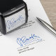Personalice fácilmente este sello de goma con su propia firma personalizado. El sellado de goma de su firma ahorra tiempo para usted y sus empleados. Sólo tienes que subir una fotografía de tu propia firma cuando se te solicite. Disponible en diferentes colores de la carcasa y colores de tinta. No hay cantidad mínima de pedido. No hay cargos de instalación.