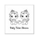 Niñas personalizados, con trajes de rompecabezas con bichos estelares a juego con sonajas de bebé. La pelota de juguete está descansando entre ellos.