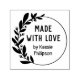 Hecho con amor autoinnato estampado con una corona de hojas de baya dibujada de forma simple. Dale a tus productos hechos a mano o a tu casa un toque personal con este sello personalizado hecho con amor y que se entinte con tu nombre dentro de una corona de berry.