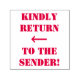 Este diseño de sello de goma incluye el mensaje "¡POR SUERTE REGRESAR AL ENVÍO!", junto con un símbolo de flecha. Podría utilizarse para indicar que el correo recibido puede haberse dirigido erróneamente y debe devolverse al remitente.