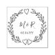 Boda y sello de fecha, personalizado con sus iniciales y fecha de boda. Sus iniciales están escritas en elegante tipografía manuscrita y se colocan en un marco botánico dibujado en doodle de corazones de amor y follaje. Un diseño dulce perfecto para papelería boda y favores.