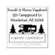 Simple RV camionero camping diseño auto-enlace marca de dirección de retorno para viajeros, excursionistas, parejas retiradas y personas de fuera. Lee CAMPESINOS FELICES debajo del nombre y dirección y AVENTURA VIVA en todas las letras mayúsculas. Un regalo de jubilación para hombres o mujeres.