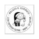 Smiling white cat in a traditional Christmas hat holding a large wrapped present is wishing everyone a very merry Christmas! In its left paw the cat is holding high a bell with a bow. Please note, you may need to adjust the information by adding or deleting some characters to make the text properly aligned.