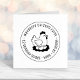 Cute chubby cartoon chicken sitting on the nest with eggs. Customizable address. Please note, you may need to adjust the information by adding or deleting some characters to make the text properly aligned.