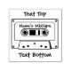 Cinta de casete de audio vintage. Icono vectorial con colores personalizables. Tres campos de texto personalizados.