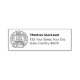 Insignia escudo del clan MacLean rodeada de una correa y hebilla. campos de texto personalizado para nombre y dirección.