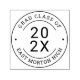 Un diseño moderno de sello de goma autointintable personalizado que presenta el año de graduación actual enmarcado por "Clase de graduación de" y el nombre de la escuela. Personalice con el año de graduación de la clase, el nombre de la escuela o el nombre del estudiante. Los puntos clásicos acentúan el marco redondo.