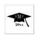 Un sello de goma de graduación con el ilustracion de un gorro de graduación. Personalice el monograma y el año.