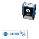 ¡Un sello con un barco cohete volando al espacio exterior entre las estrellas y planetas para que los niños marquen sus libros y objetos! Personalizar con el nombre del niño.