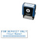 Este diseño de sello de goma con temática tecnológica incluye el mensaje "ÚNICAMENTE PARA DEPOSITIVO", además de un nombre de personalizable y un número de cuenta. Tal vez podría ser utilizado por un profesional contable o un profesional administrativo para añadir fácilmente un aval restrictivo a un cheque.
