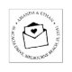 El sello de la dirección de retorno romántico dulce incluye tu(s) nombre(s) y dirección de retorno rodeando un ilustracion de un sobre abierto con un corazón asomando.