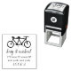 Embelleces tus fechas, invitaciones de compromiso, invitaciones de boda o correspondencia diaria con nuestro amablemente romántico sello de dirección de retorno, que incluye tus nombres y detalles de la dirección de retorno en una moderna mezcla de estilo escrito a mano y letras en bloques, coronado por un ilustracion de bicicleta tándem de estilo dibujado a mano. Perfecto para las parejas que comparten el amor por el ciclismo o para los enamorados.