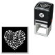 Este divertido diseño de sellos de goma para El día de San Valentín, o cualquier ocasión romántica, presenta pequeños corazones blancos formando un gran corazón lleno de corazones con el texto 'amor' inscrito en un rincón.
