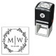 Corona Botánica con Dos Iniciales de Monograma de Boda Sello de Goma