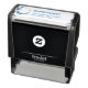 Estampilla con ilustracion místico. Luna de media luna azul oscuro con un elegante contorno de círculo delgado y flores blancas a lo largo de sus bordes.