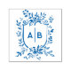 Sello Automático Crest Botánico Monograma de Boda Azul Francés
