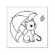 Cartoon illustration of a cute cat sitting under an umbrella and watching a falling leaf.