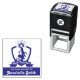 El diseño del producto presenta un escudo con un pingüino de pie con un tubo interior y una pelota de playa. Esta ilustración de animal bastante salvaje con texto personalizado hace un sello de goma autoentintado lindo y único para niños.