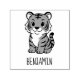 Cute cartoon illustration of a tiger cub sitting. Customizable text.