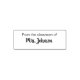 La línea superior dice Desde la clase de. La segunda línea del texto de visualización muestra el nombre del profesor como una firma. Todo el texto se puede editar o eliminar.