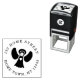 Un diseño circular personalizado de sellos con tinta propia que incluye un ángel rodeado por los detalles de tu dirección. Ideal para añadir un toque estampado de mano extra a sus tarjetas de vacaciones.