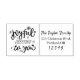 Personalice fácilmente estos sellos de goma de caligrafía personalizado Saludos festivos alegres Nombre de familia Devolución de dirección con sus propios nombres y dirección. Para personalizar de estos sellos de caucho, haga clic en "Personalizar esta plantilla" y cambie el texto en los cuadros proporcionados.
