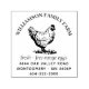 Crea tus propios sellos de huevo para tu granja familiar con esta plantilla llamativa. Este diseño se hizo teniendo en cuenta su pequeña empresa familiar y se puede usar con varios estilos de embalaje y envolturas. Este moderno sello de caucho presenta una hermosa imagen rústica de una gallina. El nombre de la granja familiar aparece en la parte superior con una negrita letras grandes clásicas, doblando el ilustracion. Debajo de la gallina, hay un espacio para tu lema personalizado (la plantilla dice huevos frescos de campo libre), en cursiva. Y debajo hay una dirección y un número de teléfono en una fuente simple y fácil de leer. Para personalizar de este sello, simplemente haga clic en Personalizar este botón de plantilla y reemplace el texto.
