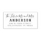 Este elegante sello de goma de entintado automático presenta "El futuro Sr y Sra" en un guión de caligrafía fluida combinado con su apellido y dirección en tipografía serif limpia. Perfecto para parejas comprometidas que marcan invitaciones de boda, anuncios de compromiso, y correspondencia diaria. Un recuerdo considerado para fiestas de compromiso, regalos para la ducha de la novia, y planificación de la boda.
