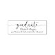 Haz que tus correos de graduación sean de diseño sin esfuerzo con nuestro sello de dirección de retorno de graduación de Moda! Este diseño exuda sofisticación con un elegante guión de moda que deletrea con gracia "Graduado", marcando el tono para su bien merecida celebración. Justo debajo, el nombre y la dirección del personalizado se exhiben en elegantes letras cursivas, añadiendo un toque personal pero pulido a cada sobre. Perfecto para anunciar su logro con estilo, esta estampilla le aporta un moderno y vanguardista ambiente a sus invitaciones, tarjetas de agradecimiento y más, porque su graduación merece nada menos que una perfección de moda!