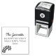 marca de dirección de devolución de moda que muestra sus nombres o nombres de familia en el guión caligrafía, con la dirección de retorno mostrada debajo