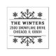 El estampillo de autotinta de vacaciones festivas presenta un marco elegante de copos de nieve de invierno que rodea el texto de la dirección de retorno de su personalizado.