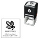 Un diseño personalizado de sellos con tinta propia que incluye el texto de la dirección de retorno y el nombre de la persona que aparece a continuación. Ideal para añadir un toque de mano extra a tus tarjetas de vacaciones.