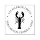El diseño de la dirección de retorno náutica incluye un vibrante ilustracion de langosta en el centro, con su dirección de retorno curvada alrededor del exterior con letras clásicas.