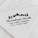 Sello de dirección de retorno con tinta propia diseñado por personalizados que presenta un diseño de paisaje de montaña y pinos dibujado a mano para los amantes de la naturaleza. Personaliza con el nombre y la dirección de la familia. Perfecto para sobres, tarjetas, regalos de bricolaje y más.