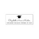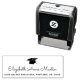 Este sello de autotinta presenta un gráfico de un mortarboard (gorro de graduación) y texto de guión personalizado para el nombre de la dirección de graduación y retorno.